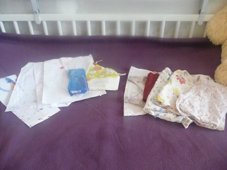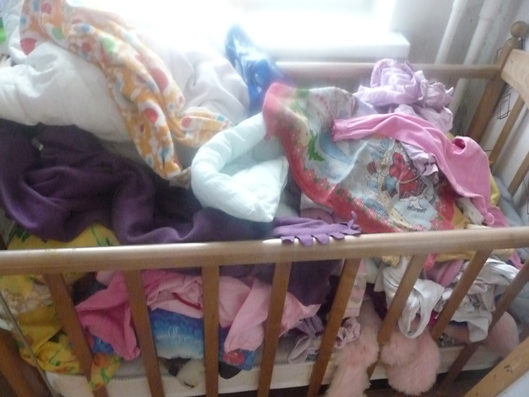 В этой кроватке были вещи на вырост, несколько подушек, летние вещи. Я всё разложила по местам. Теперь довольна. Заодно, пока раскладывала, нашла еще несколько вещей ко вчерашнему буги- вуги...