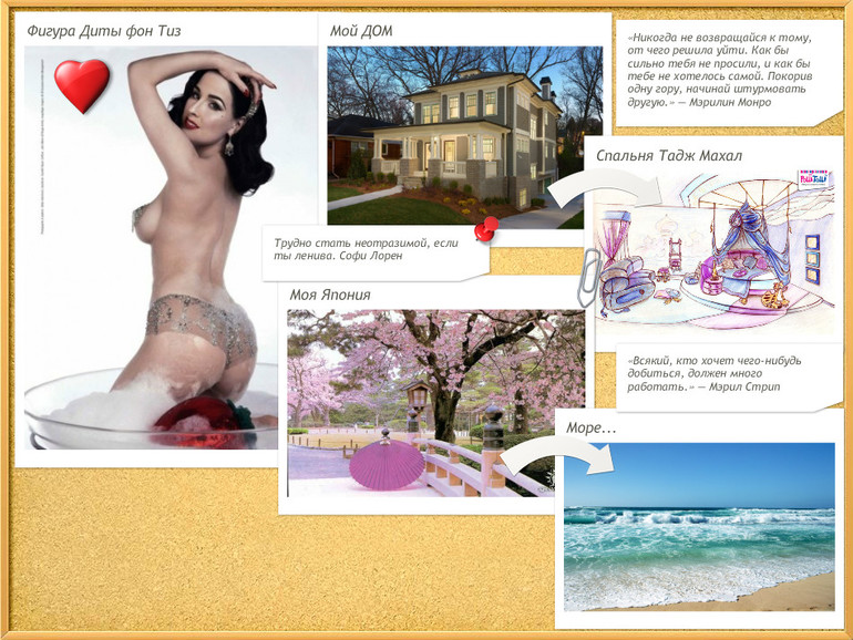 Пока смогла накидать на доску желаний совсем немного, а может наоборот слишком)))))))) Ну думаю со временем я смогу заполнить ее полностью)