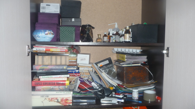Я ходила вчера по квартире и искала, что бы такого разобрать)) И меня это порадовало.. По сути дела фронт работ не большой. Пару шкафов на кухне ( с блендерами и миксерами), Постельное белье.. но там лежит все более менее прилично, только поправить... и Документы, они часто перемешиваются..