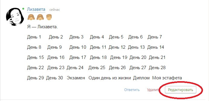 Дальше нажимаете на кнопку редактирования своего комментария тут