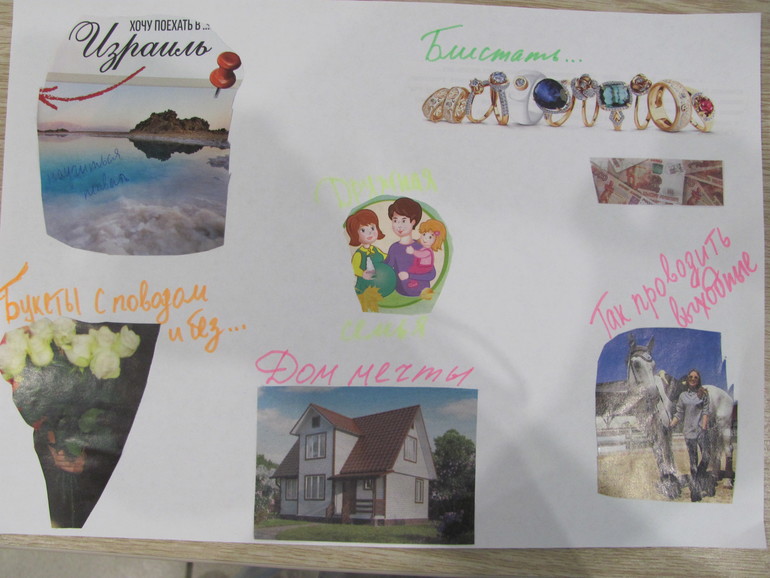 Возвращаюсь к 11 дню, обещала показать свой коллаж на тему о чём мечтаю. Он ещё не закончен.