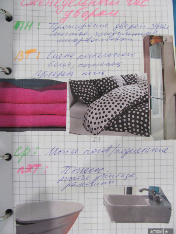 Стираю я по мере надобности: полотенца и постельное раз в неделю, дочкины вещи либо через день, если грязные, либо в пятницу. В БНП под стирку я выделила три дня.