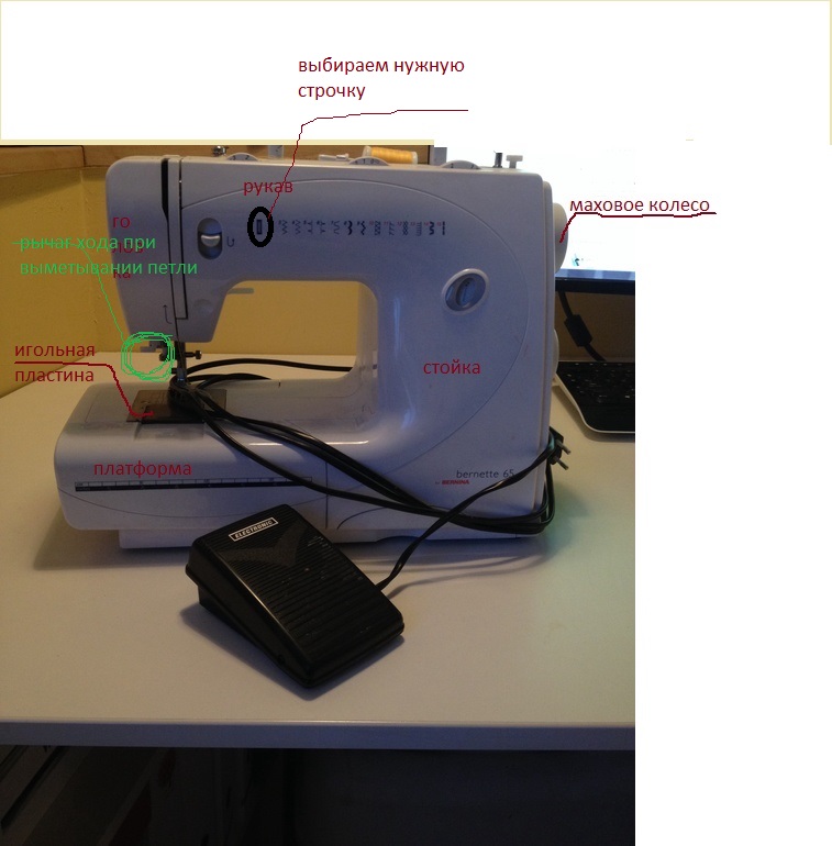 4) устанавливаем переключатель на машинке на строчку "выметывание