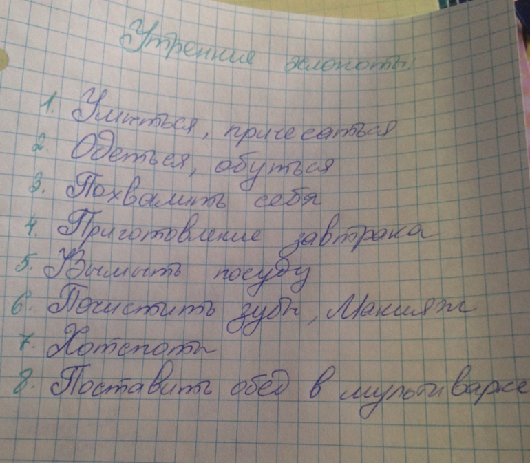 Не больше 30 минут на вечерние рутины уходит? приготовление завтрака - не рутина, "убрать все игрушки - очень категорично, трудновыполнимо в отдельные дни, поменяй формулировку. остальное - верно.