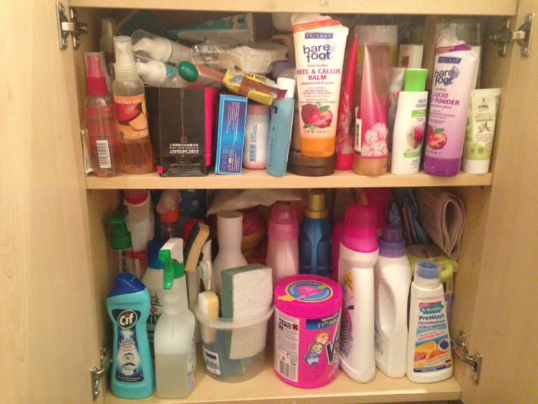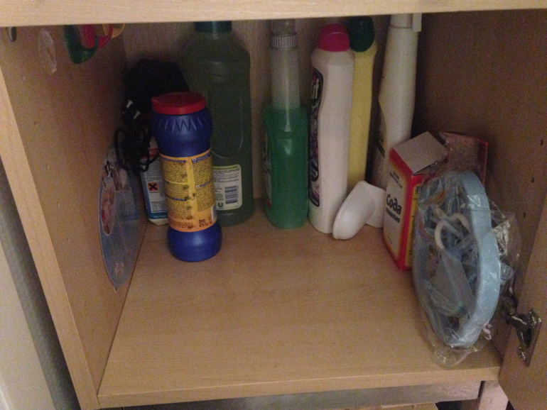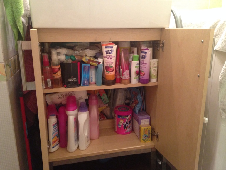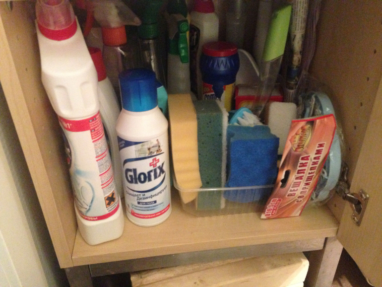Хочу эти две полки превратить в одну. И вообще использовать лишние химические средства и оставить 2-3.