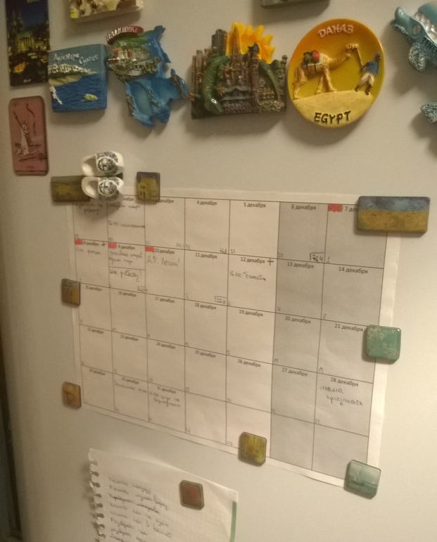 Уже наверно год у меня так. распечатываю на каждый месяц и все вношу, и дни рождения и занятия и мероприятия и вообще что-то важное, например покупку билетов на поезд для мамы. Как то сама к этому пришла.