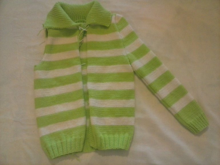 Если все таки окажется. что рукав неудобный, наверное, плюну и второй свяжу полностью зеленый... Но пока еще надеюсь, что прокатит :) Как доча померяет, сразу отпишусь :)