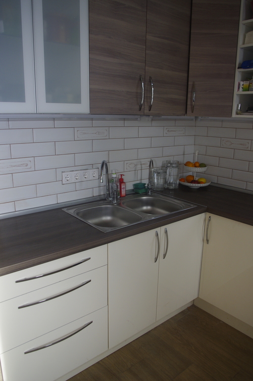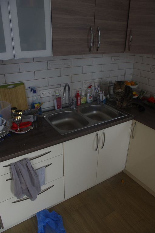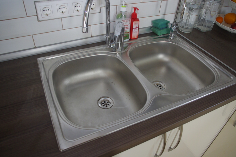 после бурных выходных с гостями с тремя детьми (и ещё 2 наших) работы на кухне было много. Начала с раковины) отмывала пемолюксом, за кранами поработала старой зубной щёткой, в конце - вытерла насухо.