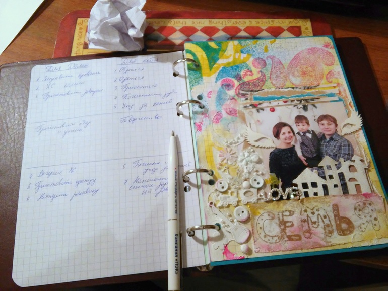 Отчитываемся по заданиямХС потушены, я прекрасна) Обеда тока нет, ну ничего, вареники поедим, у меня сегодня почти выходной)))) Переоформила КЖ как и требовалось. Оформила 1 страничку фотографией нашей семейки, так еще больше люблю свой КЖ и так хочется держать его открытым)))