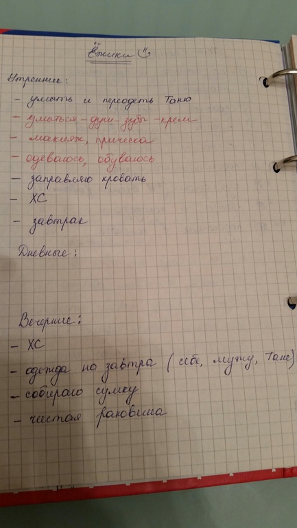С дневными рутинами я пока не определилась - понаблюдаю пару дней и, наверное, дополню список (ведь домашние дела есть точно, видимо просто делаю "на автомате" и не запоминаю))