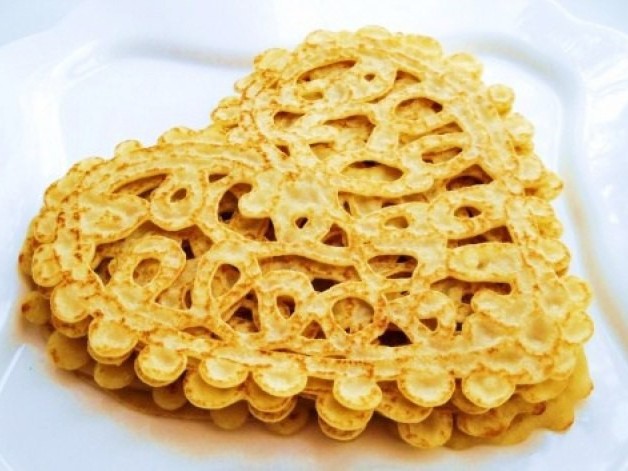 Блины кружевные на крахмале.Ингредиенты:мука пшеничная — 8 столовых ложек;крахмал картофельный — 6 столовых ложек;молоко — 1 л;яйца — 6 штук;сахарный песок — 6 чайных ложек;соль — 1 чайная ложка;растительное масло — 2 столовые ложки.Яйца взбить с сахаром до пышной пены. Влить половину нормы молока, добавить крахмал, муку, соль. Перемешать до однородности. Постепенно влить остальное молоко, продолжая перемешивать. В конце добавить растительное масло. Тесто должно быть очень жидким.Накалить сковороду, смазать её растительным маслом только для первого блина и выпекать блины. Жидкое тесто наливать тонким слоем. Тогда блины будут очень тонкими и с мелкими дырочками.Именно поэтому такие блинчики называются кружевными.Рецепт нашла вчера на сайте- на-вилке. Необыкновенно вкусные и невероятно тонкие. у меня сковорода блинная,антипригарная-очень удобно печь их. только пекутся они немного дольше,чем обычные блинчики.