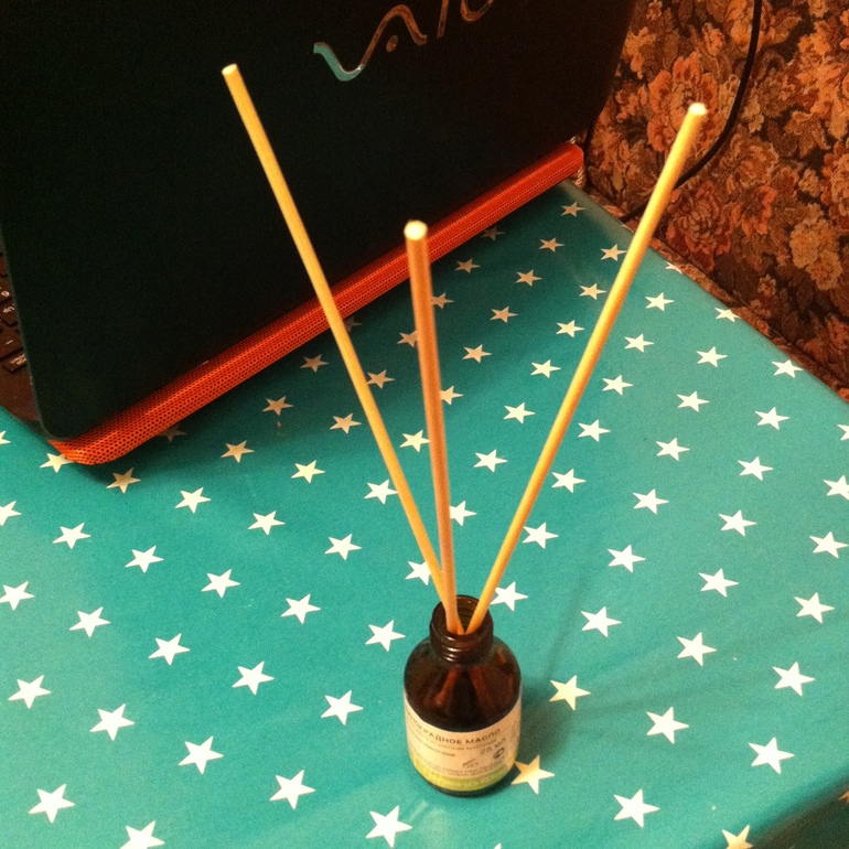 бутылка с жидскотью, а из бутылки торчали палочки - аромат был приятный - цветочно-древесный такой.