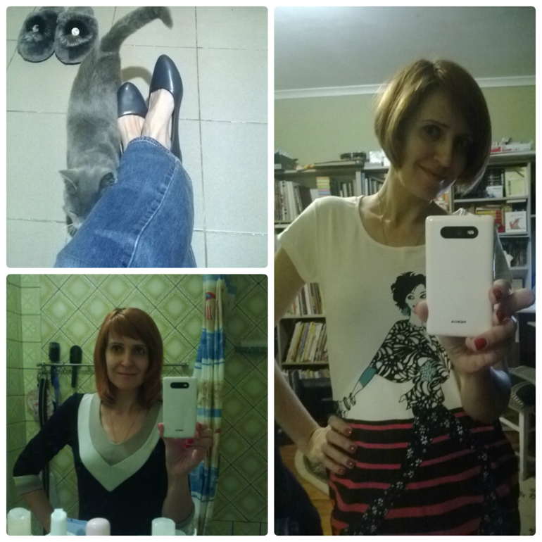 Хожу в обуви. ноги- это раннее утро, длинные волосы - вид перед выходом на работу, со стрижкой - состояние на данную минуту. решила поменять стрижку.