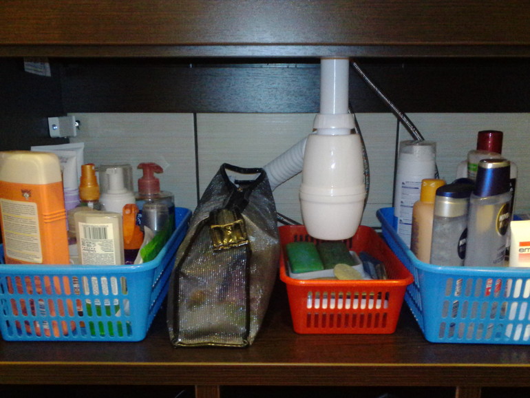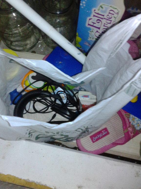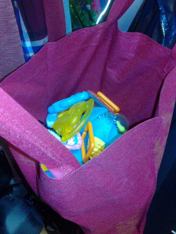 Потом прочитала задание Келли, принялась выполнять. В ванной перебрала все ящички и нашла только 2 ненужных вещи на выброс (пемза и крышка от бритвенного станка). Поэтому решила сделать Буги в ящике с Ксюшиными игрушками. Получилось 2 пакета (выбросить и отдать)