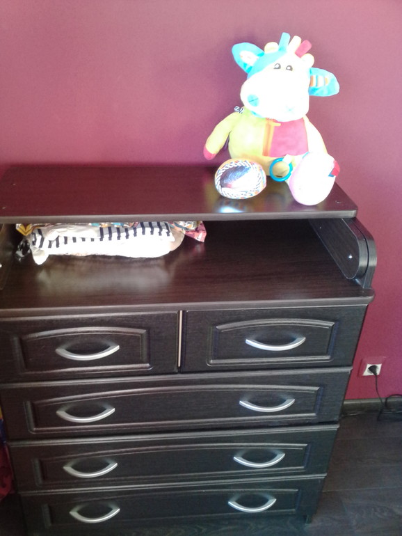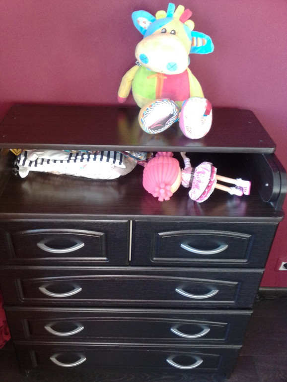 Детский комод. Стопка вещей приготовлена для отпуска. Ждёт, когда я достану чемодан.
