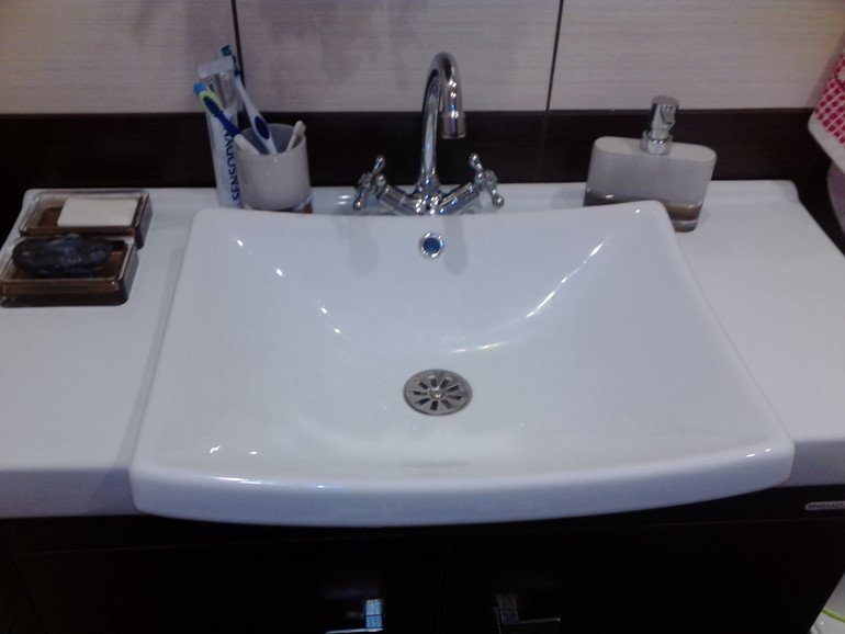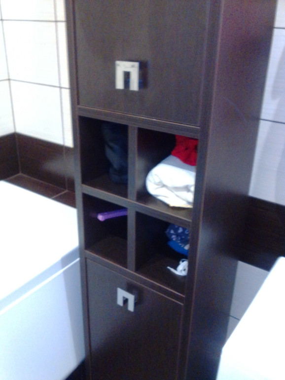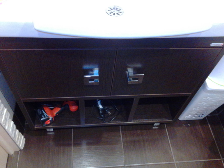 - протерла боковые поверхности, дверцы, ручки и открытые полки на пенале и тумбе