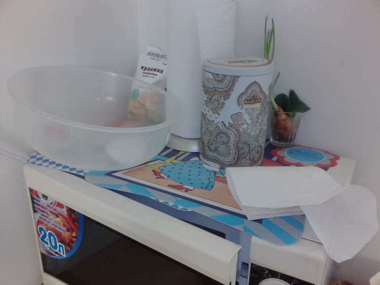 Пока чистила зубы и умывалась протерла вокруг раковины бумажным полотенцем.