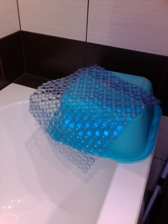 - помыла коврик с хозяйственным мылом и повесила его, чтобы стекла вода