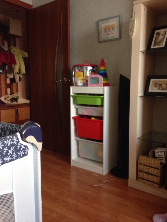 При осуществлении ЕЧУ я поняла, что много времени трачу на подбор всяких мелочей с пола, особенно детских коробочек, машинок, пакетов с кубиками, посадкой и проч. Пришлось раскошелиться на икеевские стеллажи для игрушек. Теперь в гостиную приятно зайти, а ребенка можно приучать к порядку, ибо у каждой игрушки теперь есть свое место.