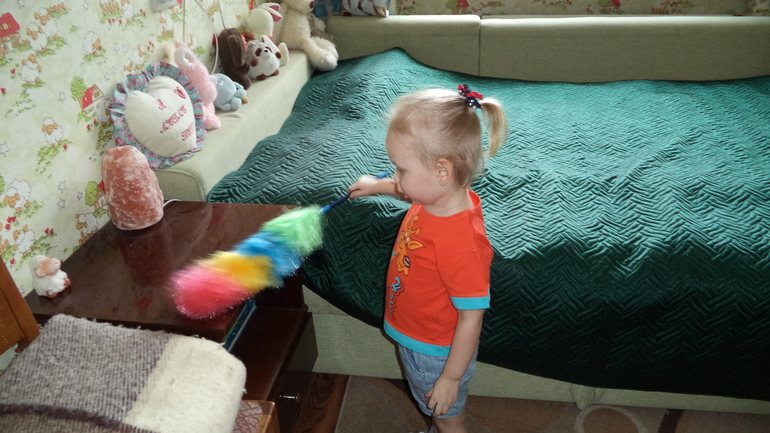 10 минут на протирание зеркала и вытирание пыли с активным участием дочки)))