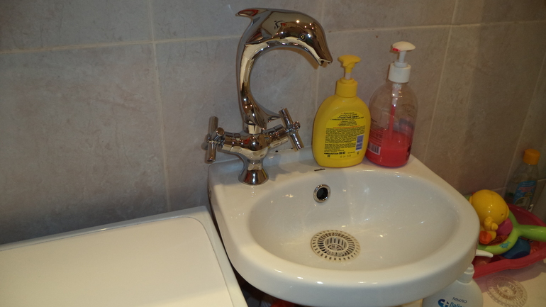 Потом мы умываемся и прихорашиваемся, потом полет с ершиком и протирание раковины и кранов в ванной: