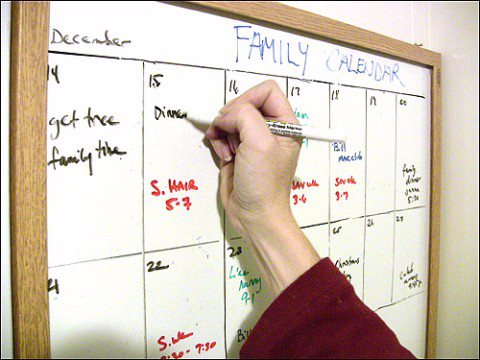 · Расписание. Как только ты получаешь данные о том, когда будут происходить события, которые прямым или косвенным образом касаются членов твоей семьи - ЗАНЕСИ ИХ В КАЛЕНДАРЬ НЕМЕДЛЕННО! Например: школьные каникулы, тренировки, сборы, занятия танцами, церковь и т.д. Как только узнала - сразу записала. Не оставляй их в машине или в коридоре. Если ты не можешь внести свое расписание прямо сейчас, прикрепи его к календарю булавкой, сделай кармашек и складывай эти бумаги туда. Но не забудь внести это расписание в календарь! Это позволит тебе знать, в каких события ты сможешь или не сможешь принимать участие, ты сможешь четко отслеживать свое собственное расписание.