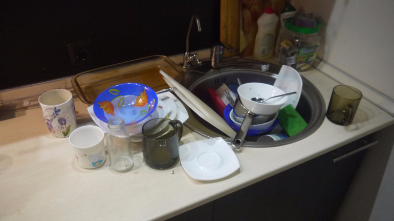 Задание я выполнила, раковина блестит. У меня, пожалуй, самое страшное фото "до". Как раз после двухдневного отсутствия.