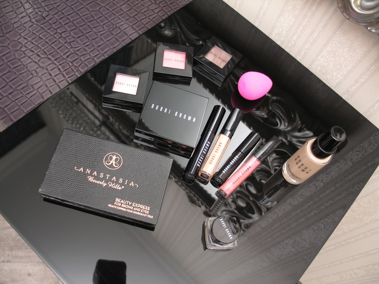 Плохо видно на фото да? Инна, разорила я мужа — Bobbi Braun вся косметика))).Взяла тональный, пудру, румяна, три вида теней, тушь для ресниц, тушь для бровей, карандаш для губ и блеск.И для бровей Anastasia Beverly Hills — но это мне вообще не подошло.