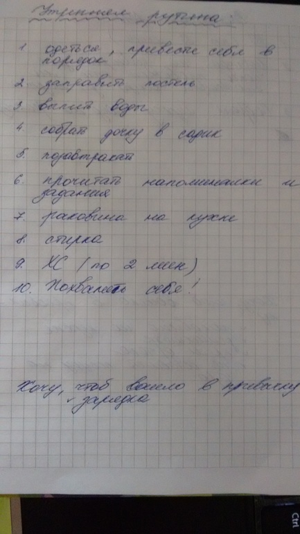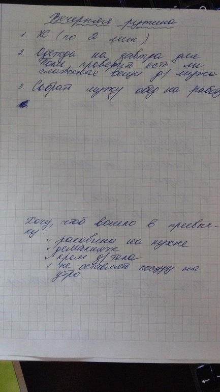 Утро прошло как обычно: оделась, выпила воды, застелила постель, собрала дочь в садик, расчесалась... А вот увлажняющие процедуры для лица, которые делаю каждый день, сегодня почему-то упустила из вида(( После завтрака по таймеру (на 15 мин) успела вымыть посуду, перетереть и разложить по местам. С ХС, которые разгребла вчера, сегодня справилась за 2 минуты и это радует)