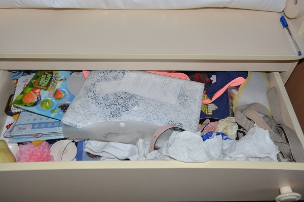 Решила начать с детского комода-там куча всякого-разного от чего пора бы уже избавится.За вчерашние 5 минут успела вот что: