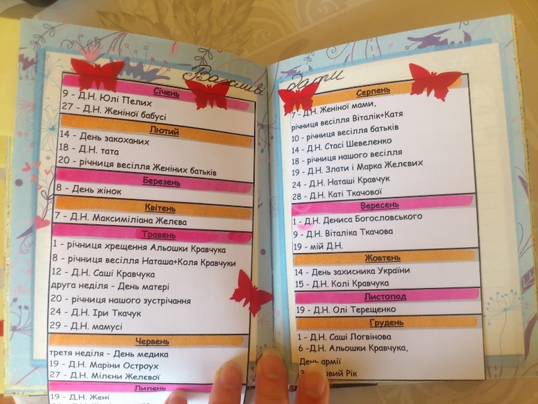 Зато заполнила раздел со списком продуктов (воспользовалась примером с сайта и подправила под нашу семью) и с важными датами!