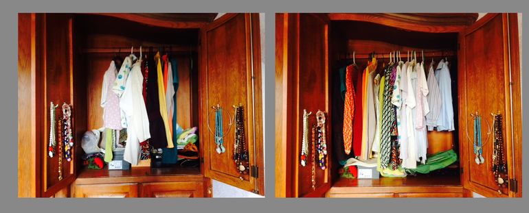 Разбираю 15 минут свое отделение в шкафу. Теперь кофточки в порядке, а кое-что отправилось на вынос.