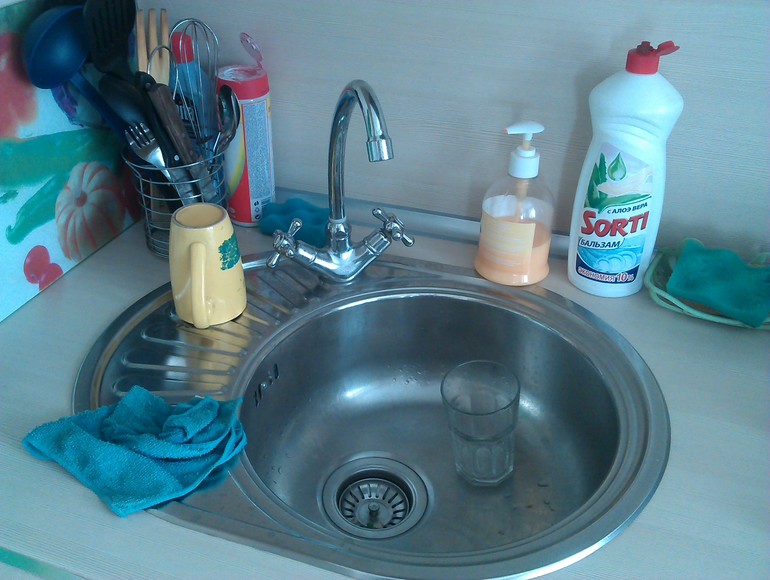 Итак, первое задание - сияющая раковина. Так как я стараюсь держать кухню в чистоте, огромного шока от фотографии до, надеюсь, вы не испытаете: