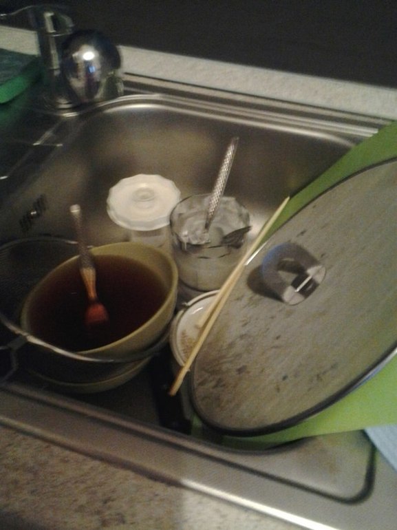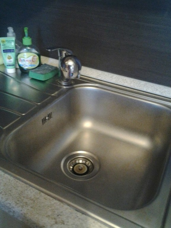 Если честно, я совсем не сторонник надраивания ее весь день, как Марла. На ночь обязательно мою, днем протираю 3 раза. После каждого мытья посуды (завтрак, обед, ужин) Но, если я на работе, то вечером меня может ждать вот это.