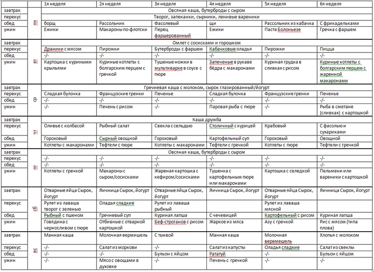 ) Такая табличка может пригодиться тем, у кого папы работают по сменно, дети ходят в школу или сад… Может сначала вам покажется она замороченной, но она снимет головную боль о питании.