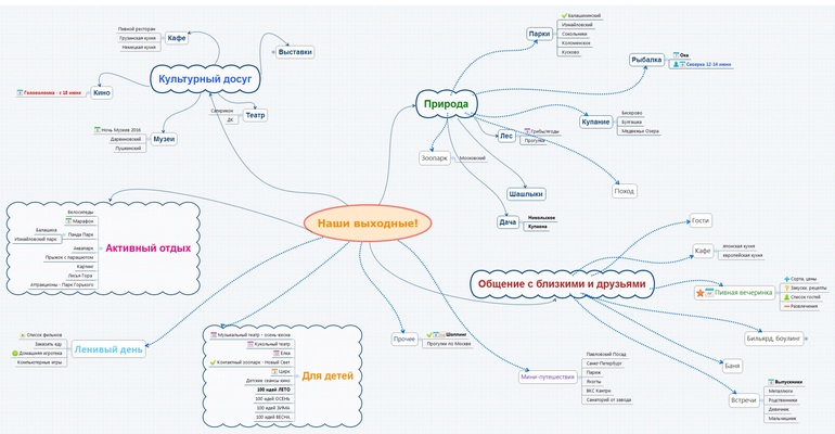 У нас в последние несколько выходных проблем с отдыхом не возникало. У меня есть списочек семейных мероприятий, но надо его расширить, внести места, которые хочется посетить. Ещё к разным мероприятиям есть списки того, что нужно взять с собой (например, на шашлыки). Пользуюсь приложением wunderlist для составления всяких списков, мне очень нравится.