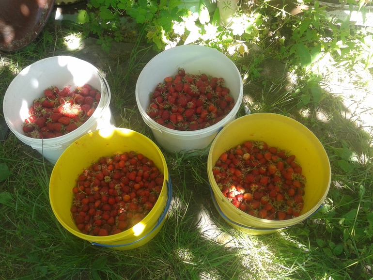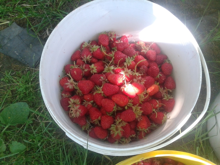 А наши выходные в этот раз прошли на даче) собирали клубнику и загорали