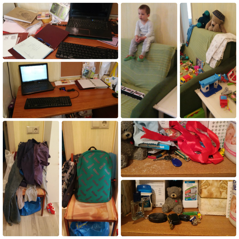 Единственное, до чего у меня вечером доходят руки - до дивана. На него сваливаются вещи при переодевании ребенка, он приносит сюда свои игрушки, вечером я ставлю набираться воду в ванную и командую ему все сложить по местам. Пока он маленький ему этот процесс даже нравится ))) Хотя если дело доходит до того чтобы убрать одежду в комод помощью это трудно назвать, но я и это позволяю)))