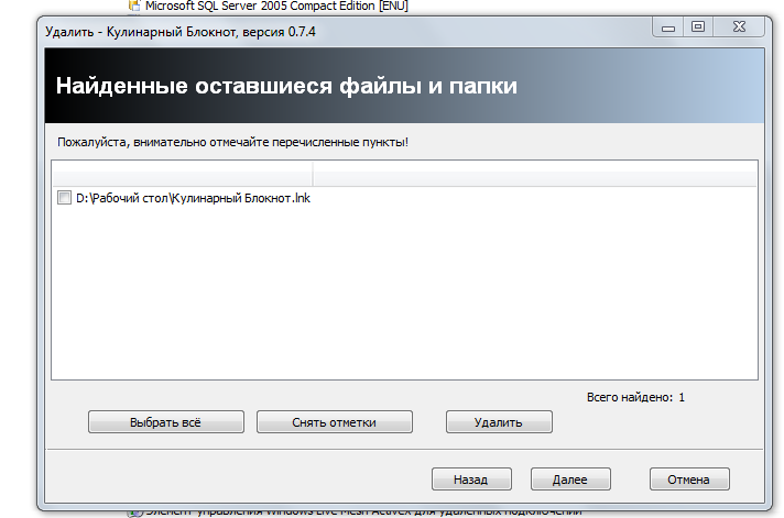 Я вот удаляла одну программу, она мне выдала только список файлов
