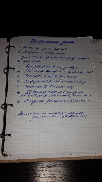 Вот мои рутины-фото ниже , продолжаю работать над ними(хорошо, что тетрадь на кольцах и с запасными блоками). Ирина, а если я не РЛ,могут быть ещё дневные рутинки?