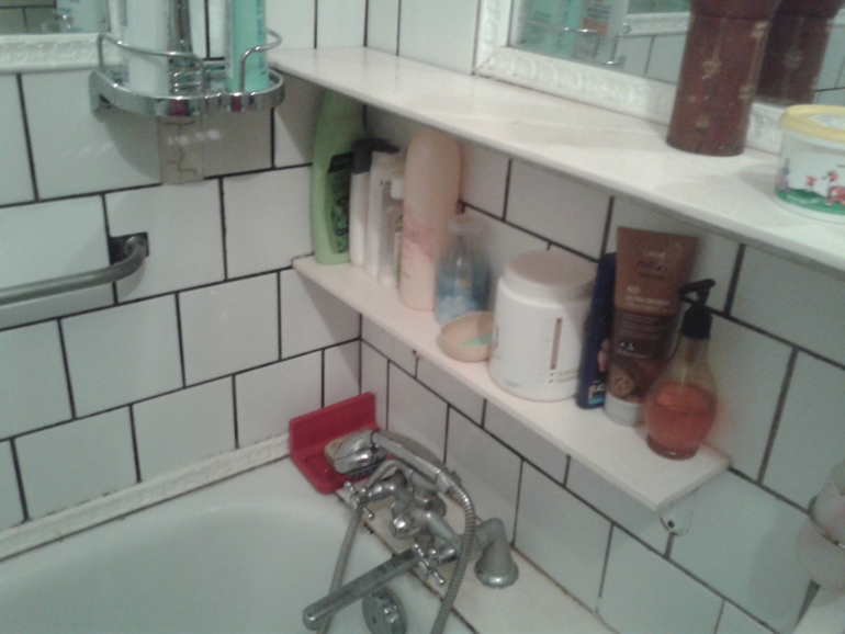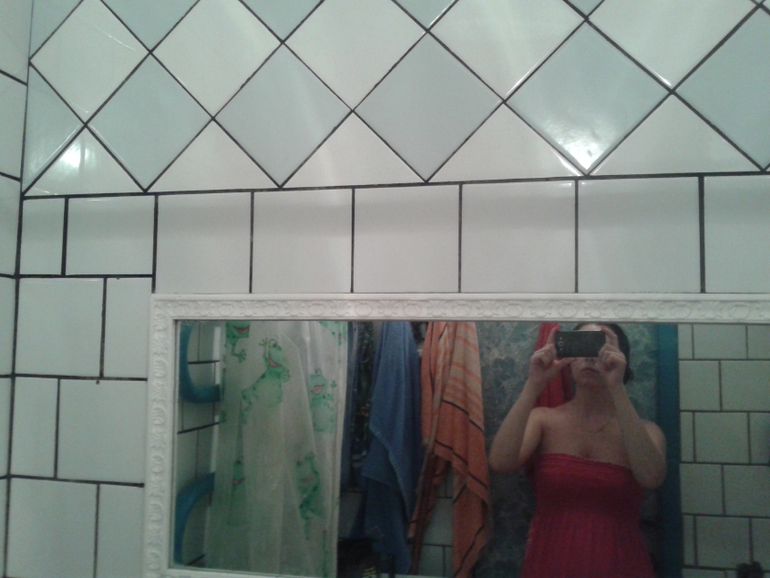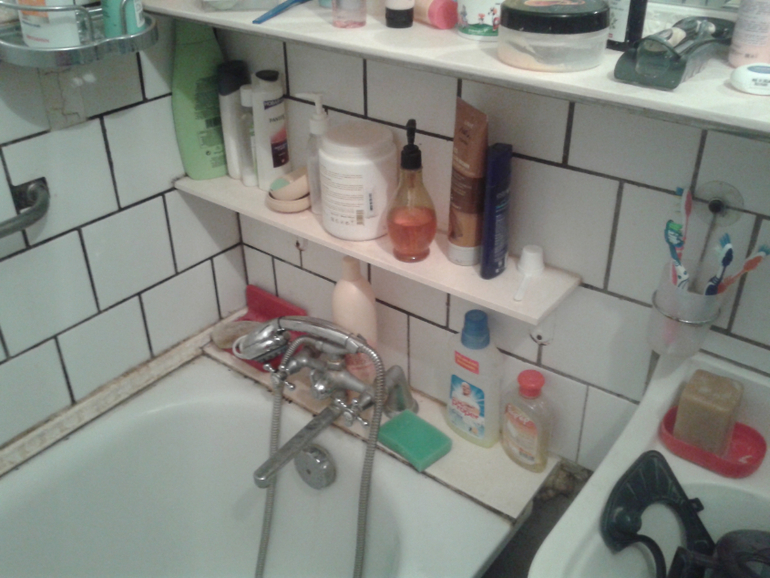 Моя ванная - это мой стыд и ужас - до нее никогда не доходят руки - это просто какой-то кошмар. Саму ванну мою постоянно, а вот стены, пол, умывальник - мне ужасно стыдно.