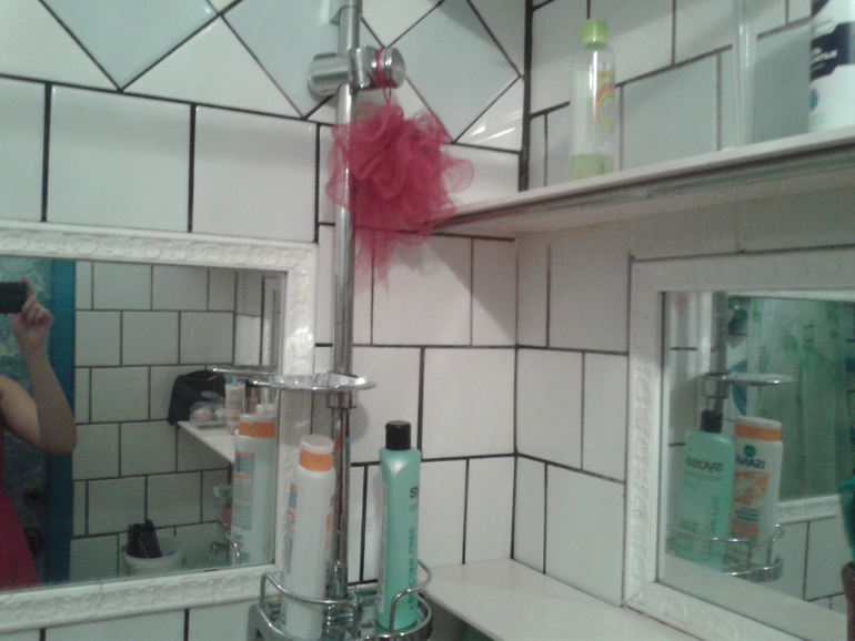 А когда я пришла смывать хлорку со стне и шторки - напор воды магическим образом исчез - вообщем смывала я его целый час. Так и закончилось мытье стен - я уставшая и не в настроении. Но раньше было хуже - я бы продолжила мыть полочки и пол, а сегодня я все это оставила на завтра.