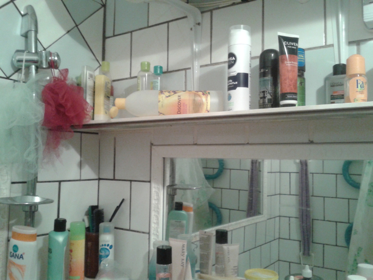 15 минут расхламления были тут же - старые бритвы, бутылки из под шампуней и гелей для душа, старая мочалка, пустые коробки из под порошка и ненужные мыльницы.