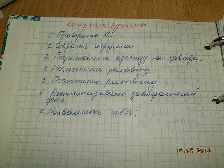 С рутинами у меня никак не складывается. Это дела, которые я обязана каждый день выполнять - каждый день одно и то же. Меня хватает на неделю, максимум на две, а потом все забрасывается. Да и в КЖ я забываю заглядывать, хоть печатай и на стену вешай.