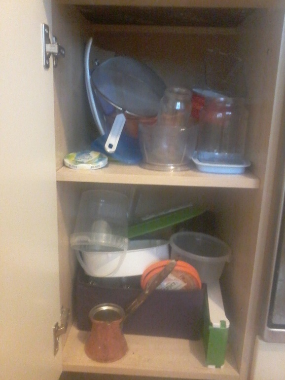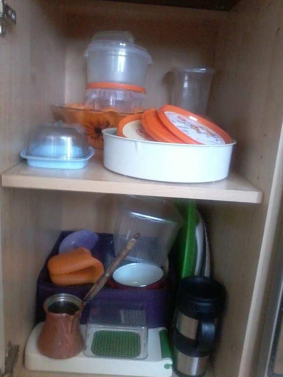 Вот тут я разобралась. А то была такая ситуация, что шкаф открываешь, а оттуда что-то выпадает)) Так и тут,... то сито выпадет, баночка)