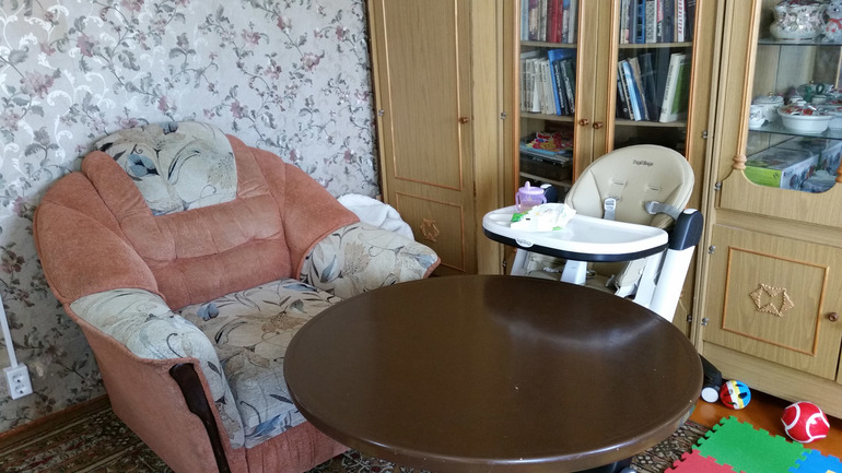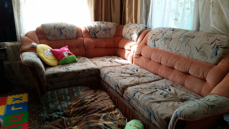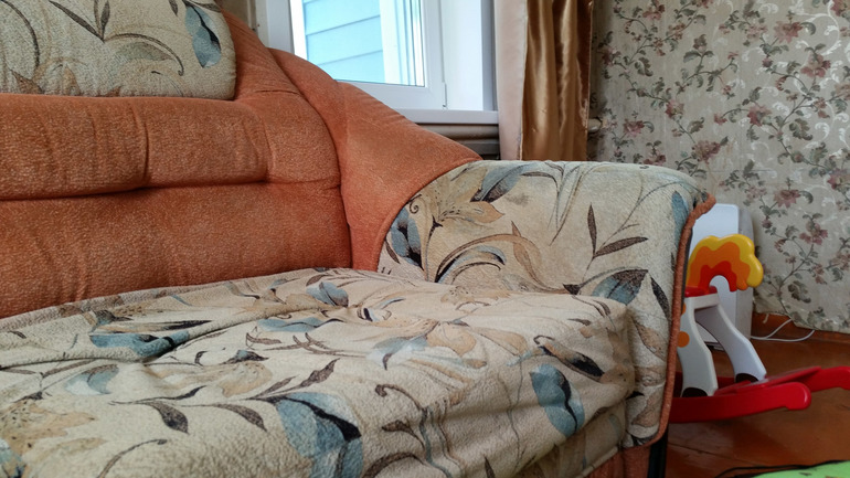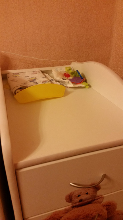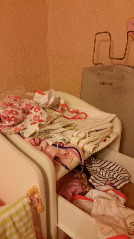 (Снизу около дивана специально лежит перина, защищающая Вику от падений башкой об пол. После первого полета с дивана теперь она тут поселилась, пока дите не научится нормально с дивана слезать, я на этой перине по утрам досыпаю пока вика рядом играет.) Больше убирать пока нечего.