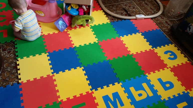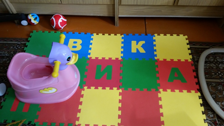 одеть памперс, правда сегодня оставила ее пока нагишом чтоб погуляла. Я пока она играла разложила мягкий пол, который убирала вчера, чтобы пропылесосить.