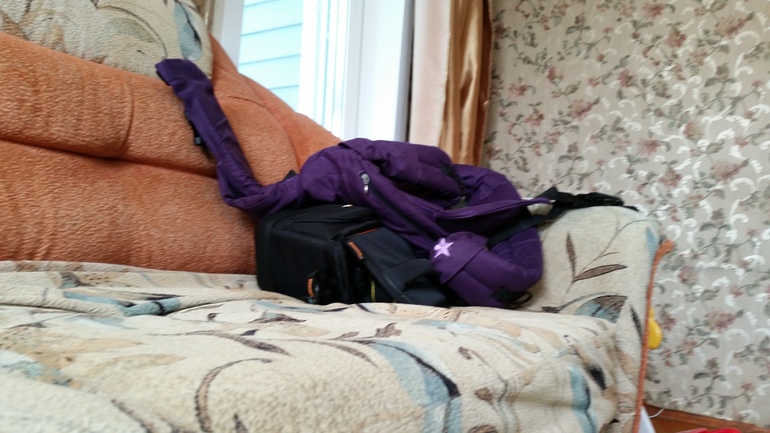 7.26. Вспоминаю что я лечу и оглядываю комнату. Поскольку муж еще спит, то мы с Викой в зале, хотспоты в зале пока разобраны еще со вчера, только убираю рюкзак и фотик с дивана на места и протираю пыль.