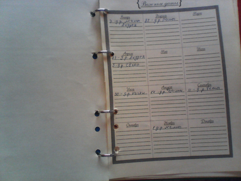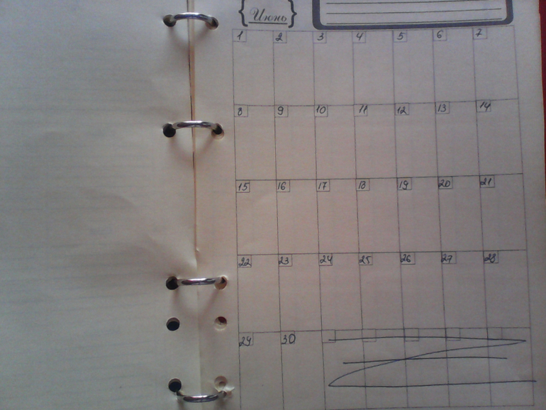 Заполнила пока только даты, так как особых праздников у нас в июне нет, после фото добавила еще запись о приезде друзей :)