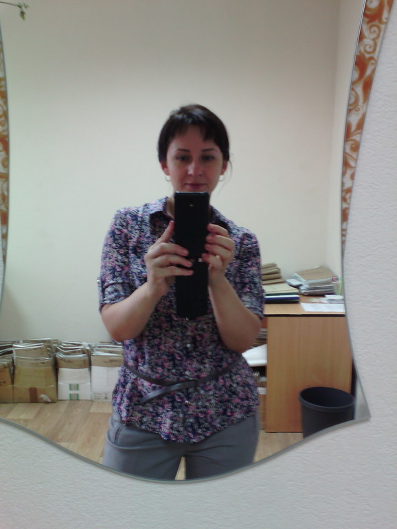 Утром выглядеть хорошо мне надо в любом случае, так как к 8-00 на работу. Сфоткалась уже на работе на телефон: